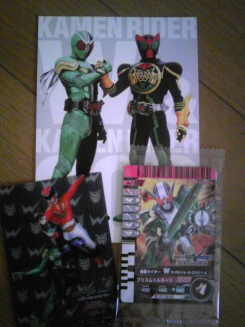 写真のブツはすでにもらった方も多かろうと思いますが、映画鑑賞時に配布される戦利品。3D映画のための立体カードにガンバライドカード(ちなみにゴセイジャーのカードも入ってます)、ヒット御礼でポストカード的なものまで。実は子どもが3Dを見るのを嫌がったために夫婦二人で見に行きました。